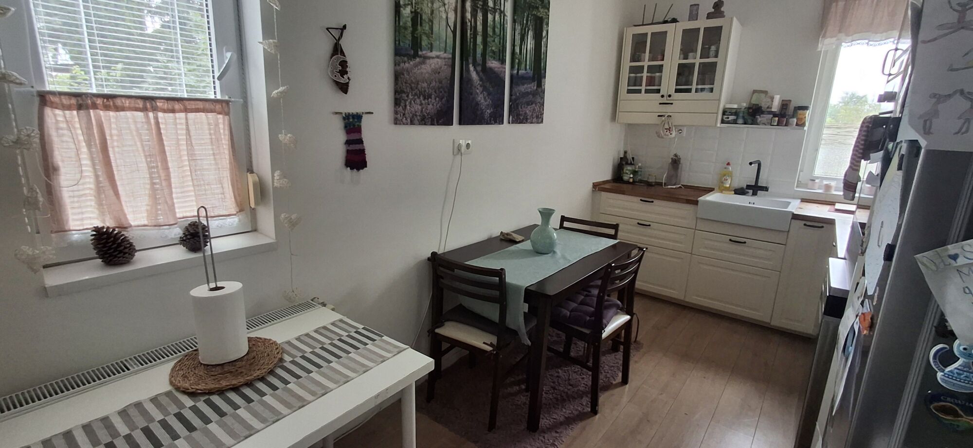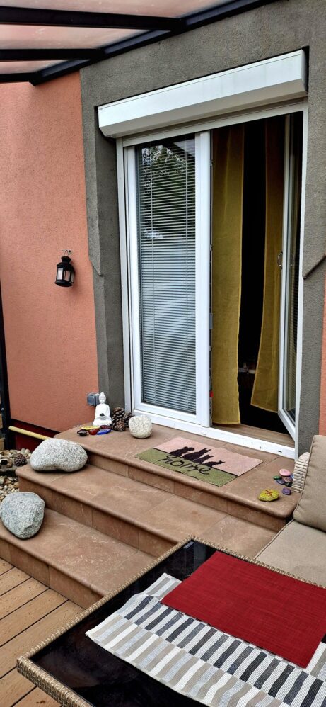 Tu si môžete pozrieť skutočné prostredie domu: svetlé interiéry, zariadené časti a exteriér s terasou a súkromnou záhradou. Ak chcete ďalšie fotky (izby, kuchyňa, detaily), napíšte mi a pošlem Vám ich.